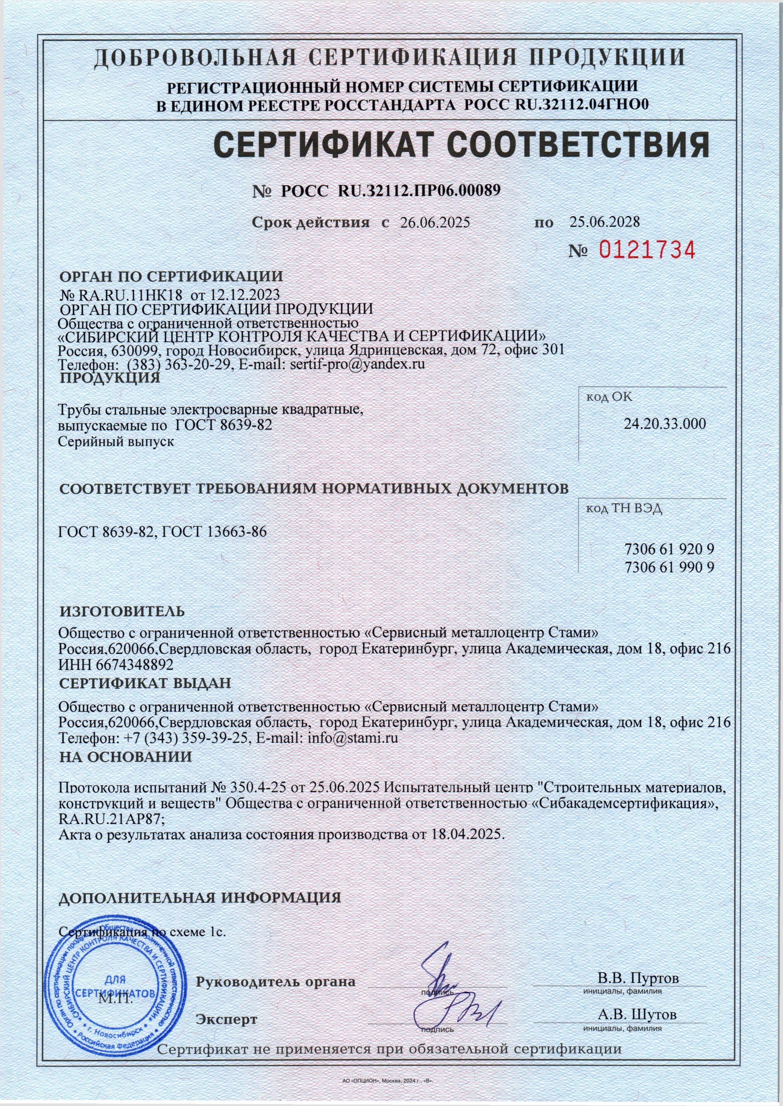 Отгрузка заказа труба профильная квадратная 25х25х2 / 28.05.2019